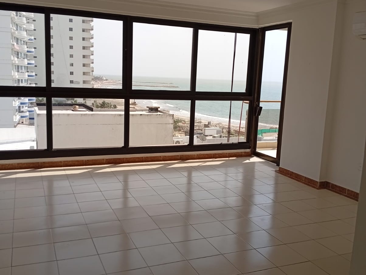 Apartamento frente al mar de 2 alcobas, 2 baños, balcón, alcoba y baño del servicio, garaje y un deposito. El edificio ofrece vigilancia 24 horas, piscina, jacuzzi, sauna y turco en sus zonas sociales.