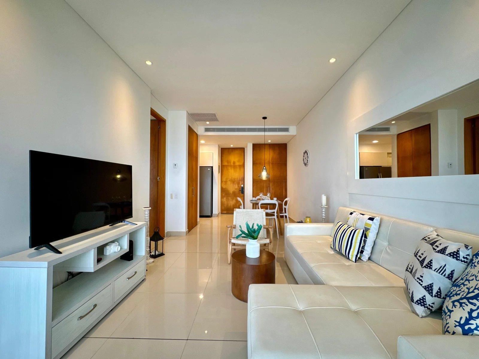 Apartamento frente al mar de uso turistico de 1 alcoba, 1 baño, i garaje y balcon. El edificio ofrece zona social, piscina, jacuzzi, turco, sauna, gimnasio.