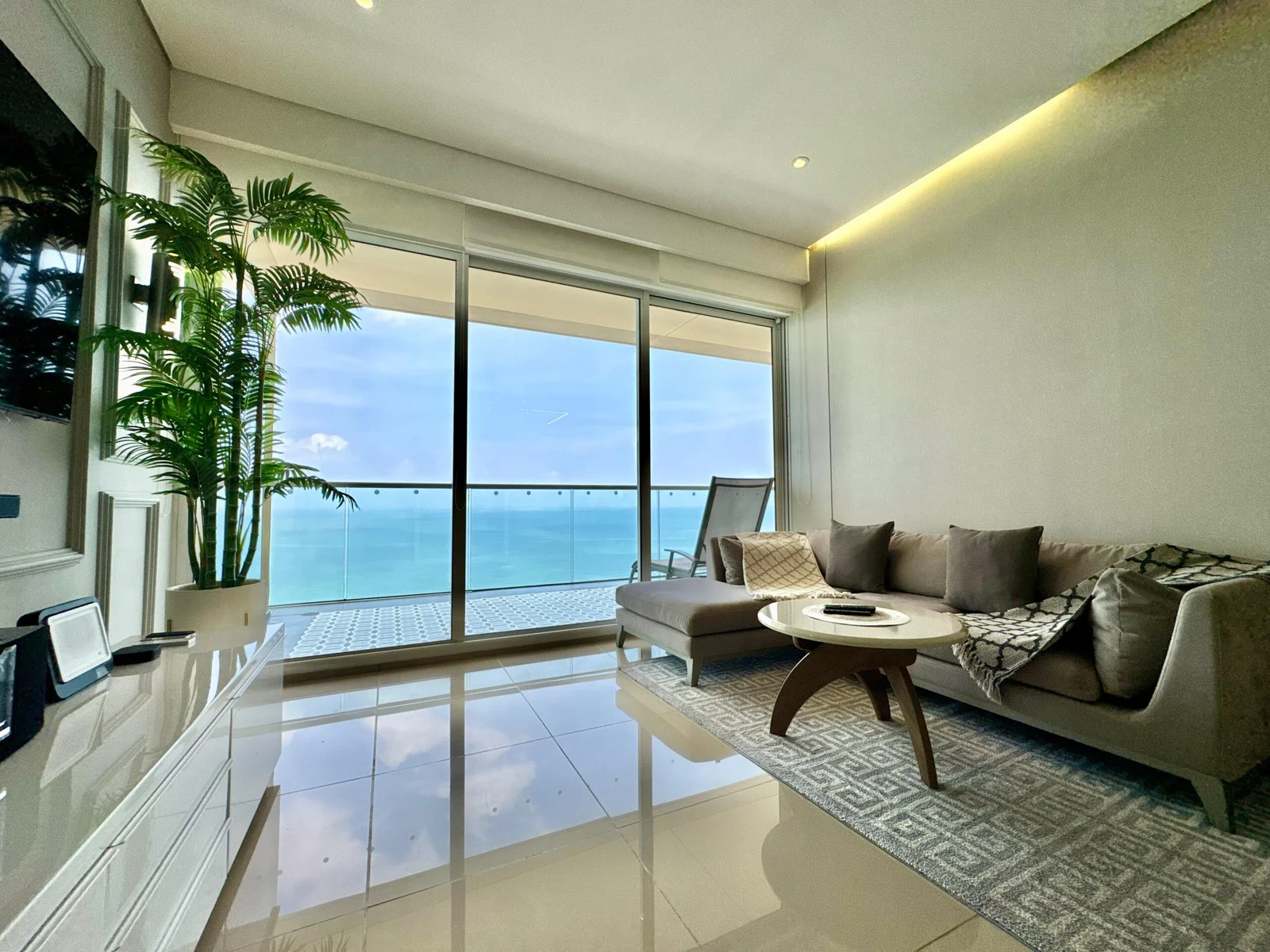 Apartamento de uso turístico con una vista privilegiada al mar de 3 alcobas, 3 baños, balcón y 1 garaje. El edificio ofrece vigilancia 24 horas, piscina(s) al aire libre, jacuzzi, sauna, baño turco, gimnasio, terraza, zona lounge y BBQ, además de Wi-Fi y estacionamiento.