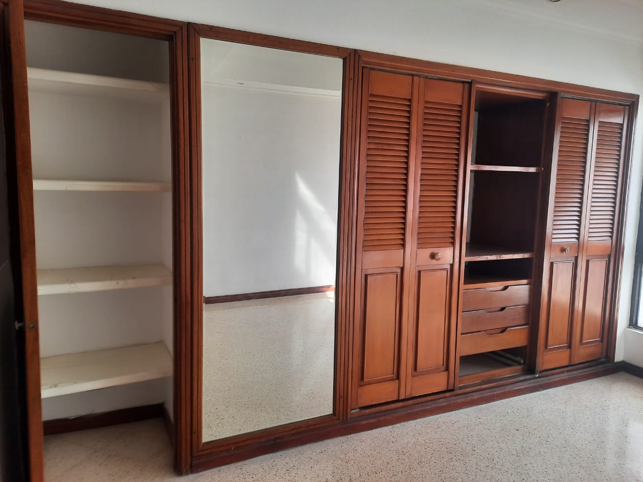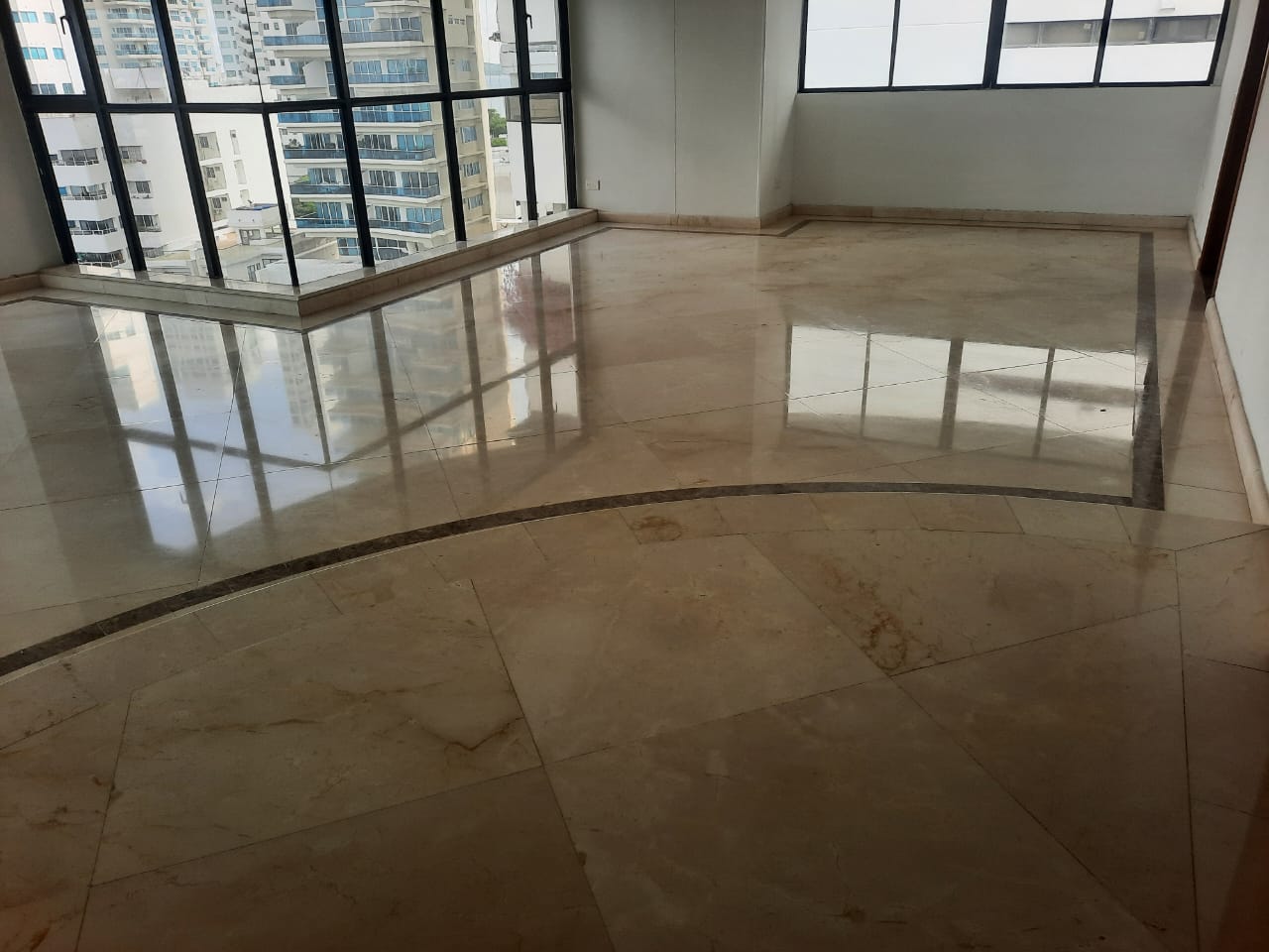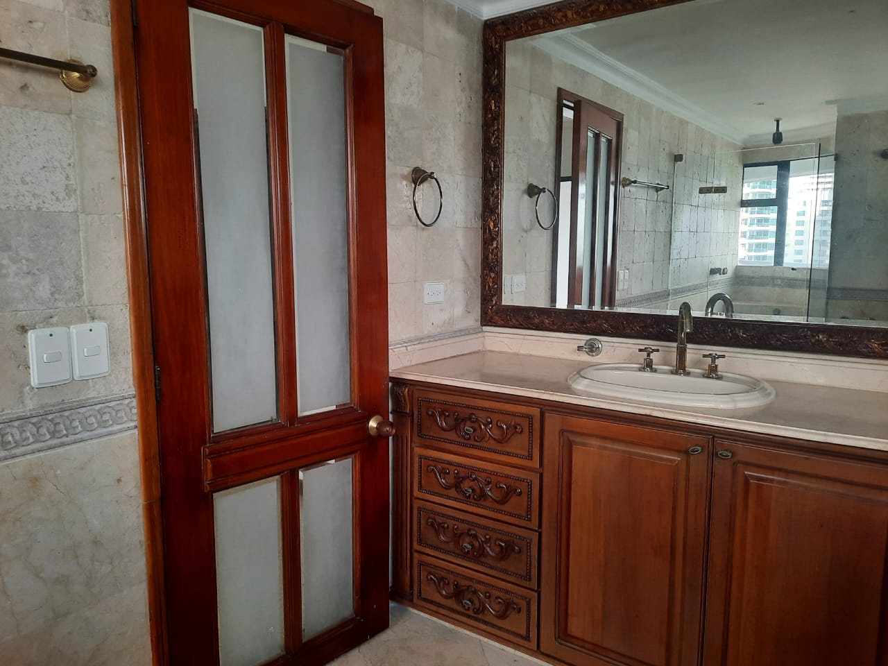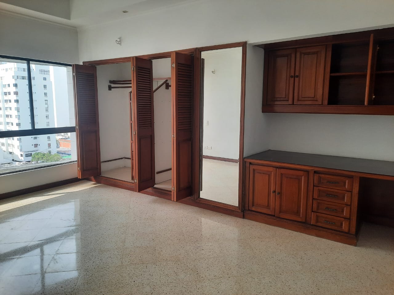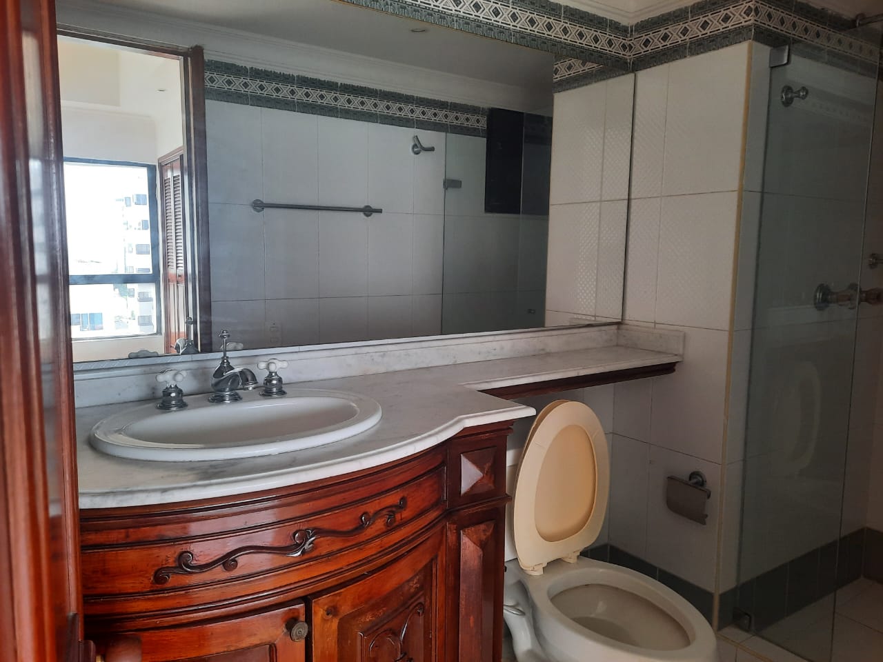 Apartamento residencial con vista a la bahía, amplio de 3 alcobas, 4 baños, sala, comedor, sala de estar, cocina, cuarto y baño del servicio, balcón y 2 garajes. El edificio ofrece vigilancia 24 horas, zona social con piscina.