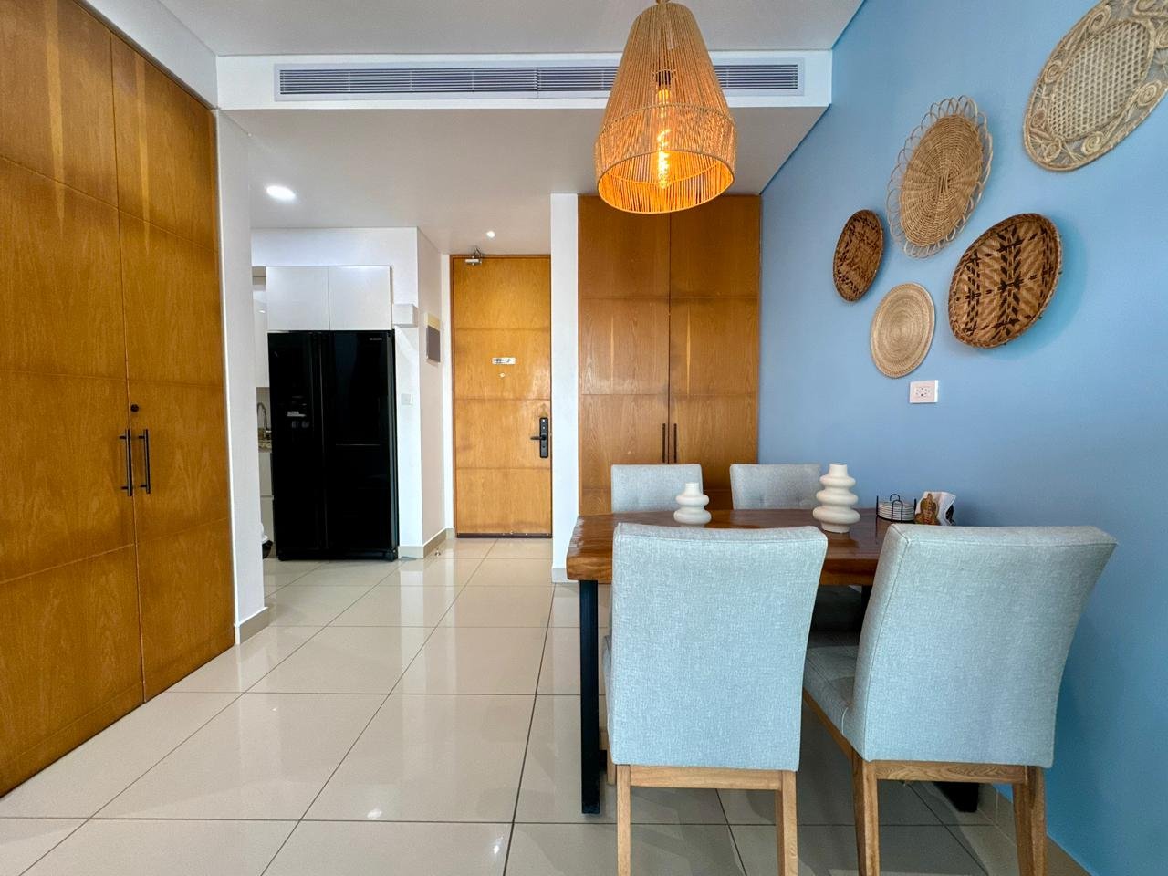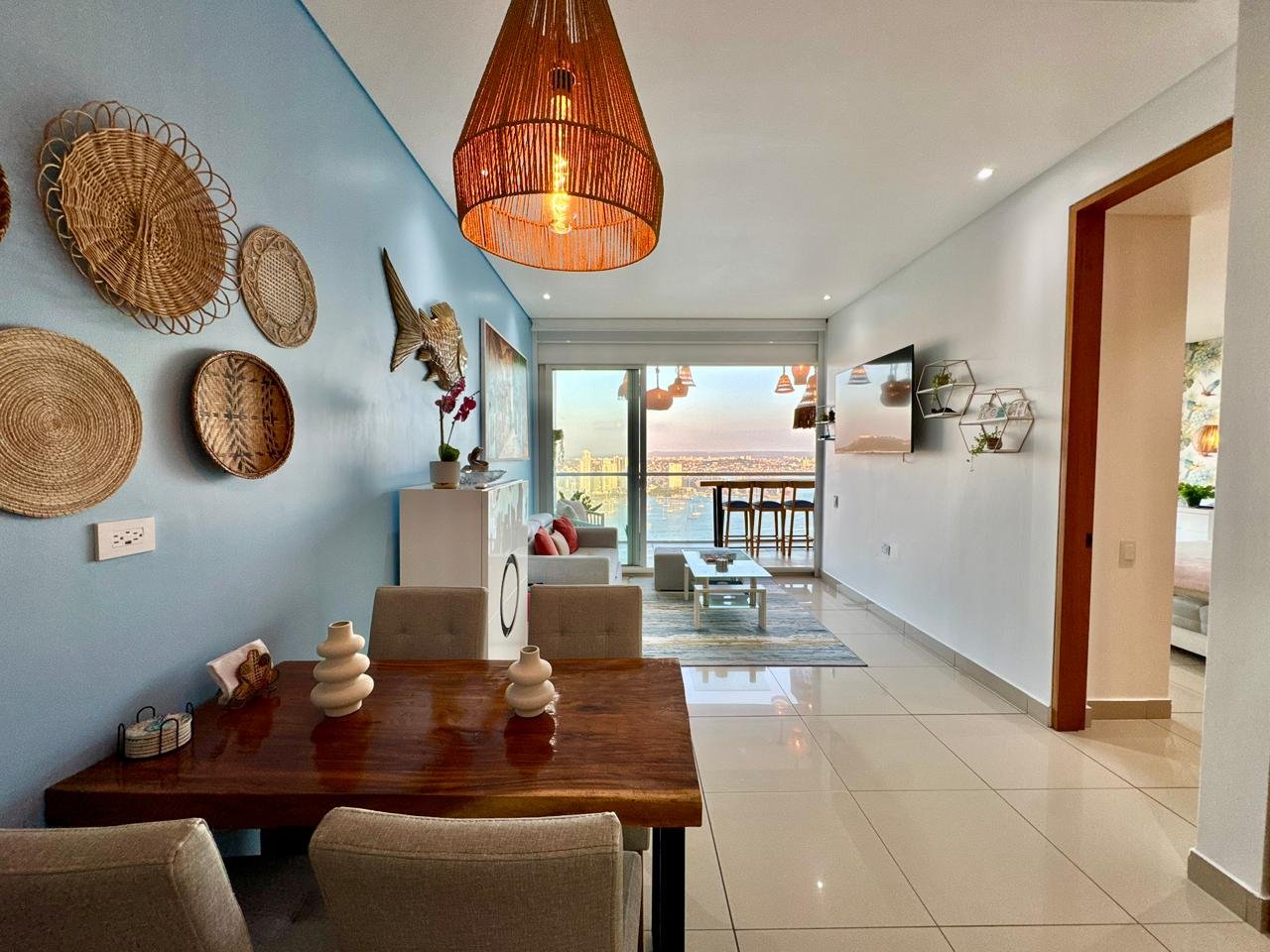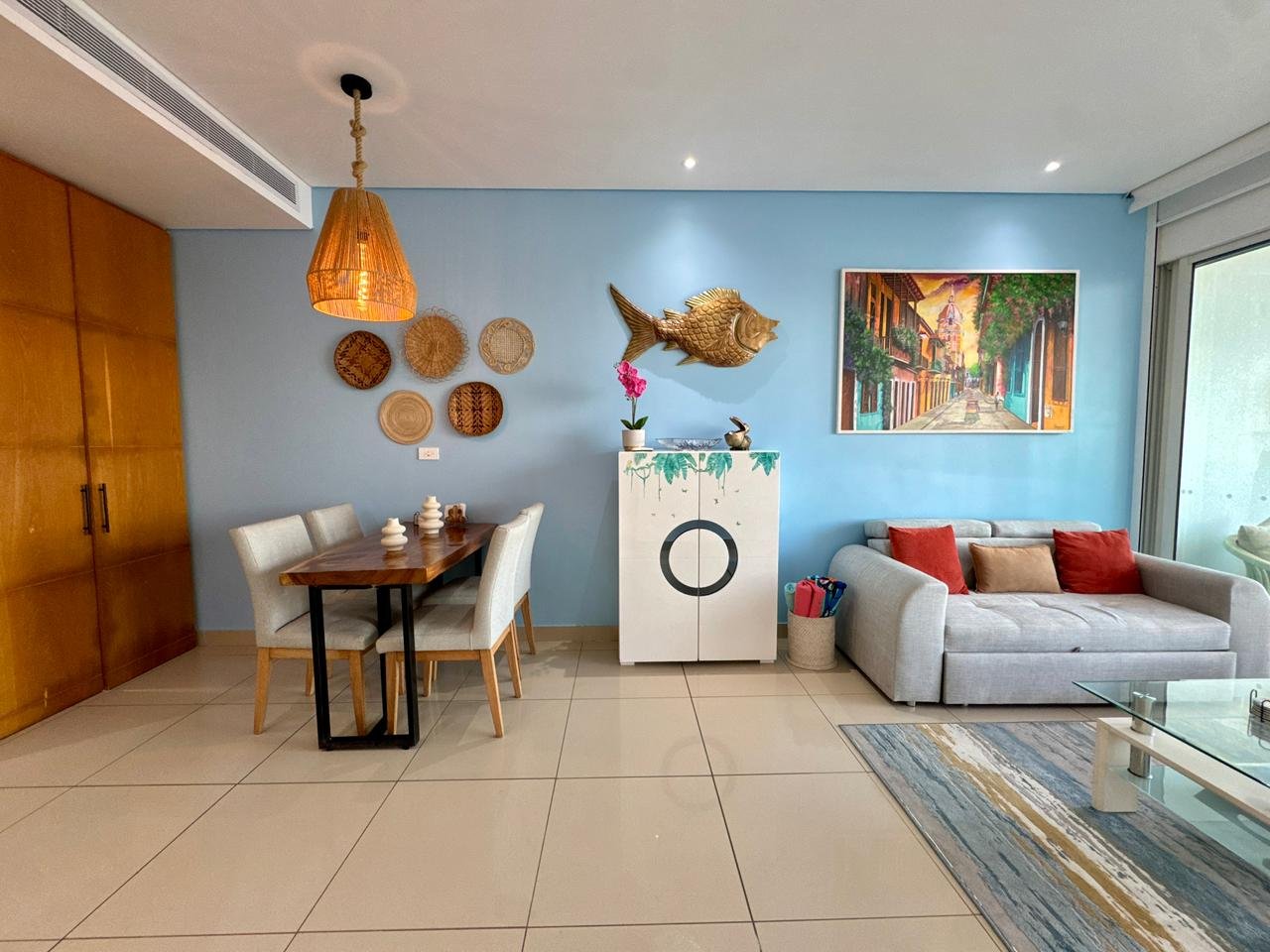 Apartamento con acabados de lujo frente al mar de uso turístico, consta de 1 alcoba, 1 baño, balcón y 1 garaje. El edificio tiene acceso al centro comercial plaza bocagrade y cuenta con con zona social, piscina, jacuzzi, turco, sauna, gimnasio.