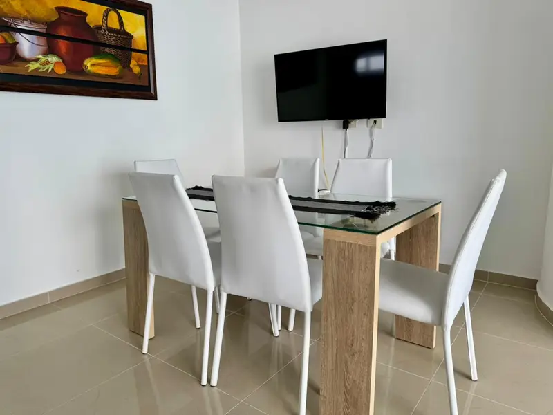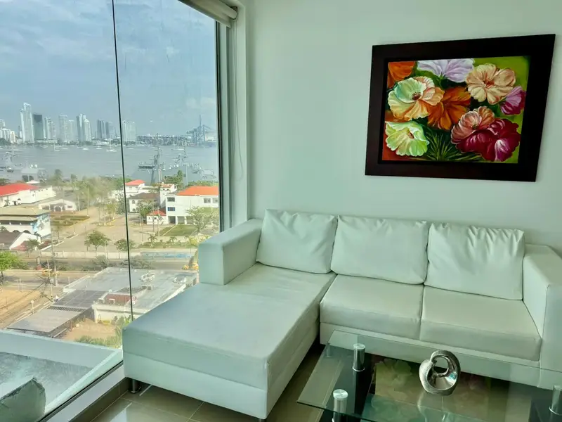 Apartamento frente al mar de uso mixto consta de 2 alcobas, 2 baños, cocina tipo americano, balcón y un garaje. El edificio cuenta con piscina para adultos y niños, jacuzzis, gimnasio recreativo, sauna, oratorio, y espacios de bar lounge/restaurante.
