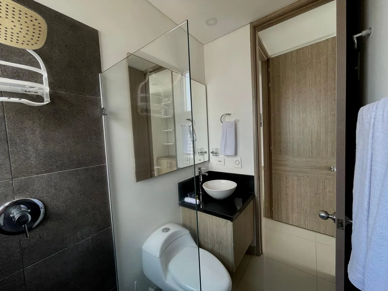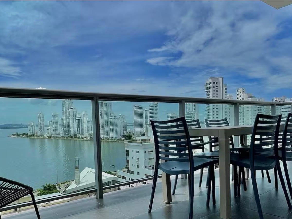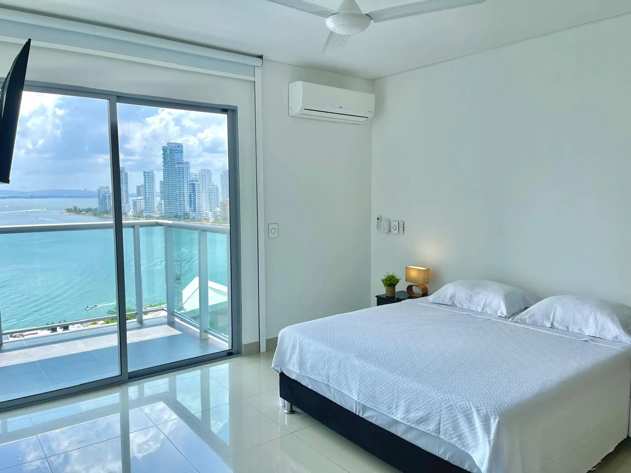 Apartamento con vista de uso mixto de 2 alcobas, 3 baños, balcón y 2 garajes. El edificio ofrece amenidades de lujo enfocadas en el confort y la vista al mar, incluyendo piscinas para adultos y niños, jacuzzis, sauna, gimnasio, zona de BBQ y un bar lounge. El edificio cuenta con un lobby de doble altura, seguridad 24/7 y es amigable con el turismo.