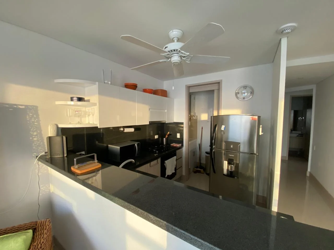 Apartamento frente al mar turístico de 2 alcobas, 3 baños, balcón y garaje. El edificio ofrece piscina, gimnasio, jacuzzi, salón social.