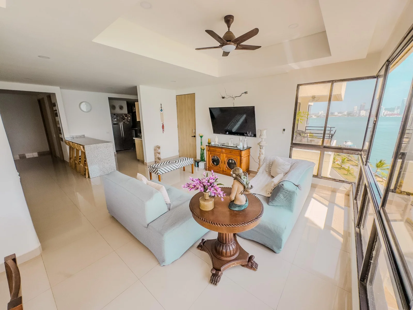 Apartamento ubicado en zona residencial frente a la bahía de 4 alcobas. 5 baños, balcón, cocina tipo americano y 1 garaje. El edificio ofrece vigilancia 24 horas-