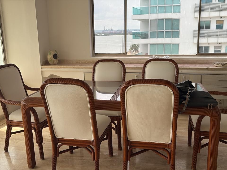 Apartamento frente a la bahía con hermosa vista de 4 alcobas, 5 baños, 1 altillo, sala, comedor, balcón, 2 garajes y un locker. El edificio ofrece vigilancia 24 horas, piscina, jacuzzi y sauna.