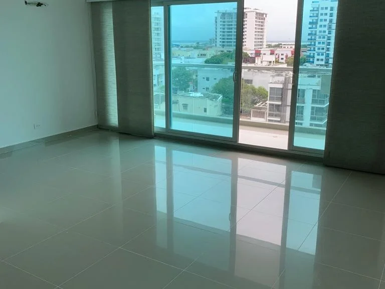 Apartamento de 3 alcobas, 2 baños, estudio, balcón y 1 garaje. El edificio ofrece zona social con piscina, gimnasio, parque infantil, muy cerca a la playa y parque lineal.