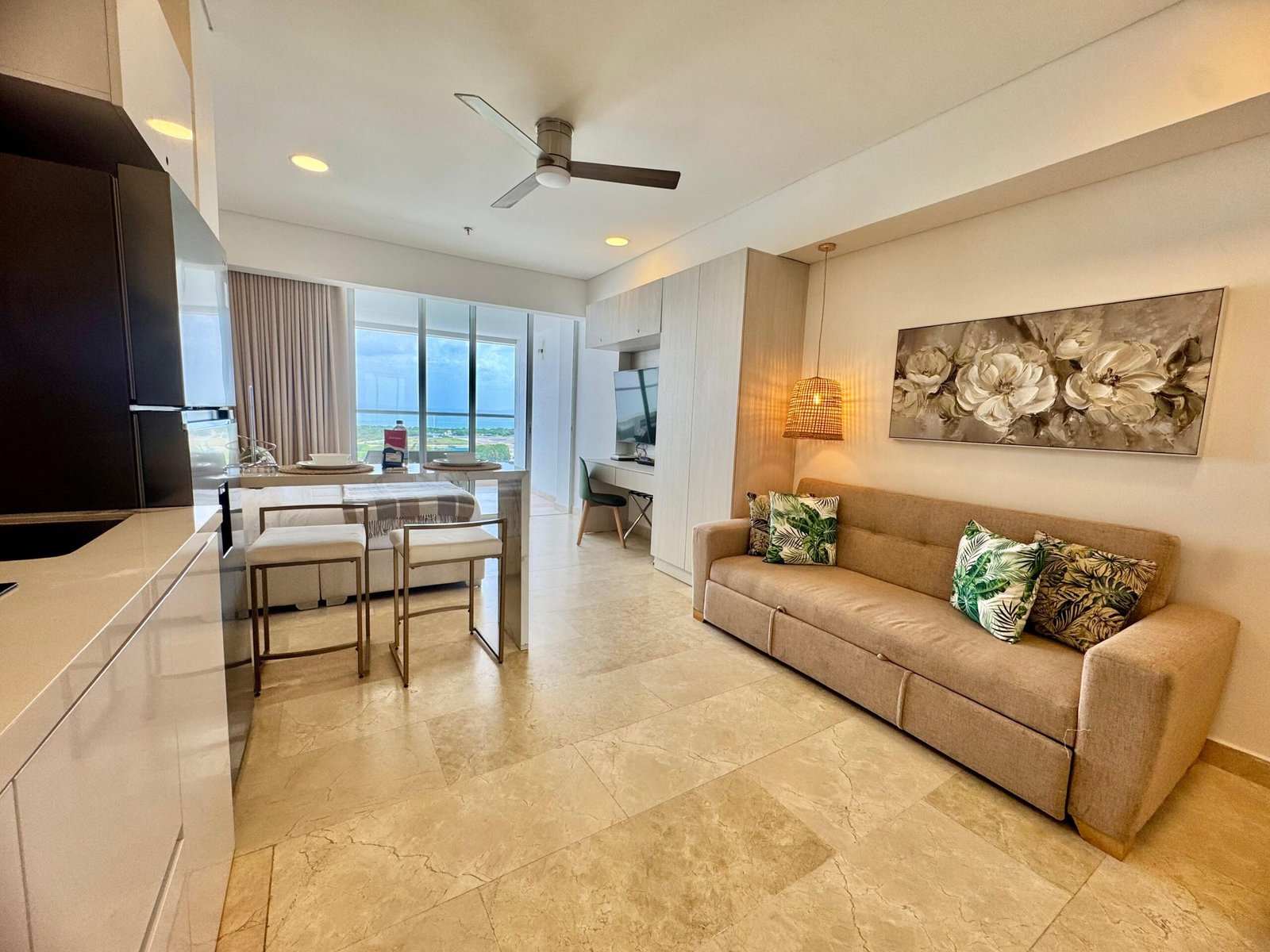 Apartamento de uso turístico con vista a la laguna de tipo loft con un baño y cocina abierta, balcón . El edificio cuenta con piscina, jacuzzi, sauna y turco, parking privado y vigilancia 24/7 .