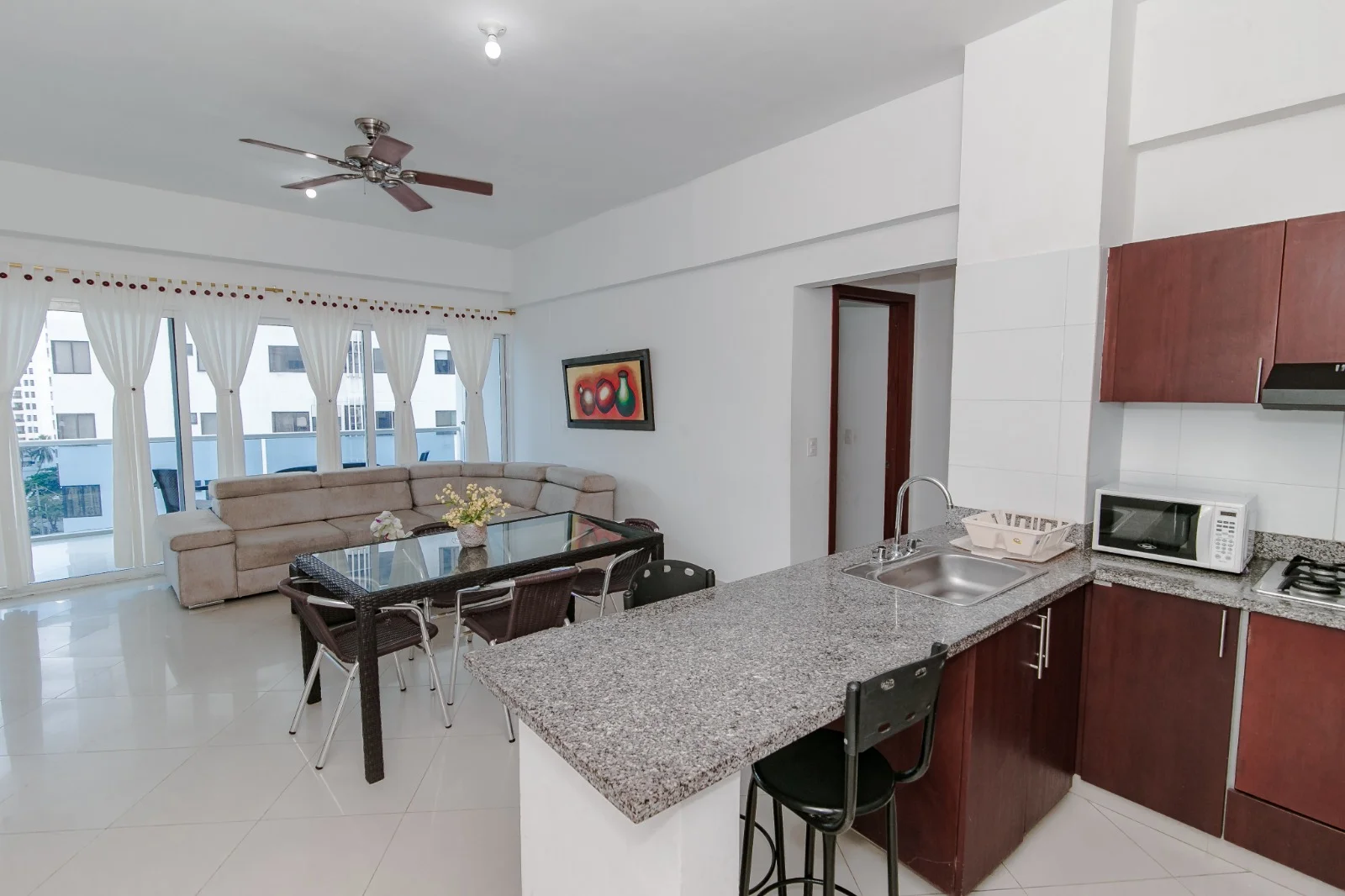 Apartamento ubicado en sector turístico con vista de 3 alcobas, 3 baños, cocina tipo americano, sala , comedor , balcón y garaje, El edifico cuenta con zona social y piscina.