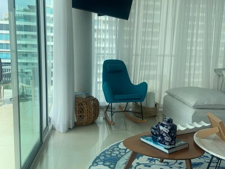 Excelente apartamento de uso turístico amoblado de 2 alcobas, 2 baños, balcón, 1 garaje. El edificio vigilancia 24 horas, Acceso directo a la playa · Jacuzzi · Piscinas, gimnasio, baño turco, Zonas verdes y Juegos infantiles-
