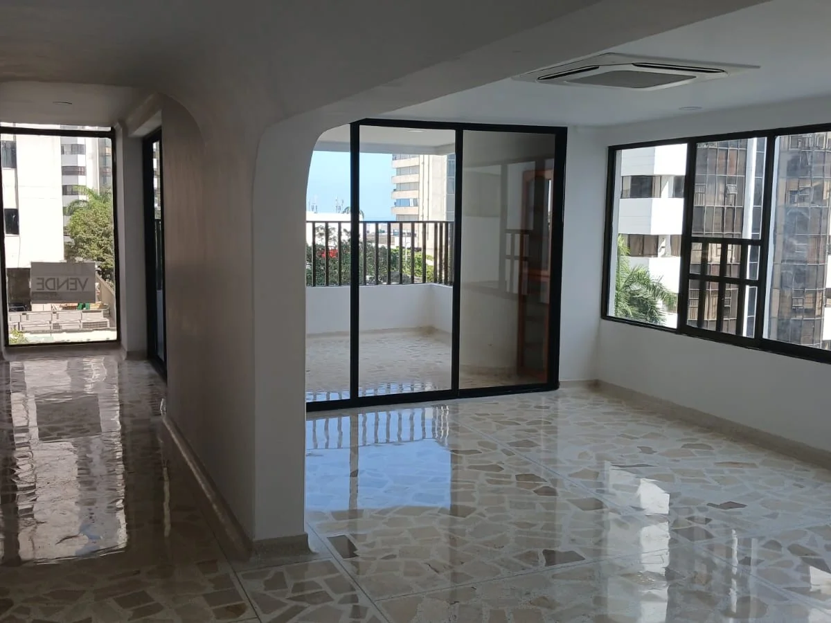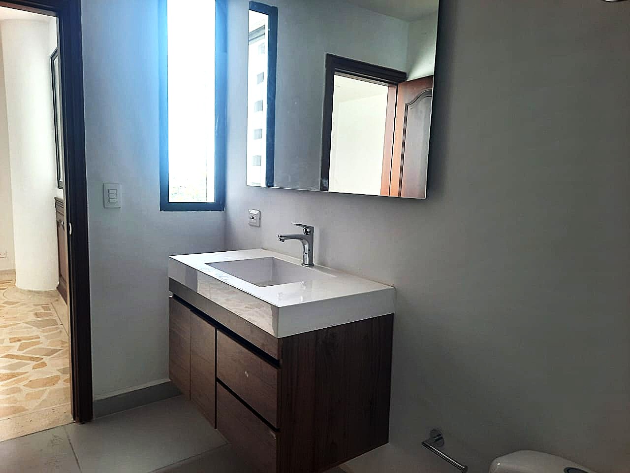 Apartamento remodelado de 3 alcobas, 4 baños, sala, comedor, estar alcobas, cocina tipo americano, alcoba y baños del servicio, balcón y 1 parqueadero. El edificio ofrece vigilancia 24 horas y salón social