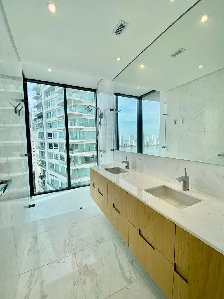 Apartamento en Bocagrande, Cartagena, con 3 alcobas, 4 baños, 2 garajes, balcón y piscina, con amplias áreas sociales y acceso directo a playas, perfecto para una vida de lujo y confort.