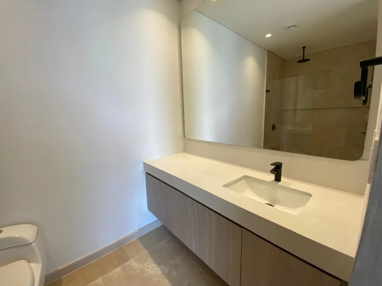 Apartamento nuevo en venta en Cartagena con 84.13 de área construida. Dispone de 1 alcoba, 2 baños y garaje. Cuenta con aire acondicionado, armarios empotrados, balcón y barra estilo americano. El conjunto ofrece ascensor, gimnasio, piscina, cancha de tenis, jaula de golf, lago, club social, planta eléctrica y portería con recepción. Ideal para disfrutar de un estilo de vida exclusivo.