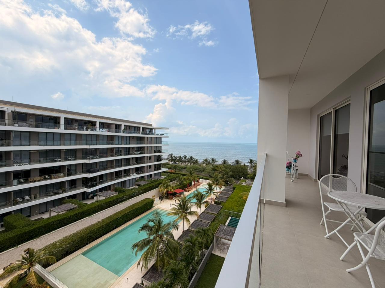 Excelente apartamento se uso turístico, con salida al mar, ideal para una segunda vivienda de 3 alcobas, 3 baños, Baño y Alcoba de servicio, Zona de labores, Cocina amplia, 2 parqueaderos, 1 depósito . El edificio ofrece varias piscinas (una frente al mar), acceso directo a la playa, gimnasio, sauna, turco, jacuzzis, lobby de lujo y senderos peatonales. Además, cuenta con zonas verdes, vigilancia privada, parqueadero para visitantes y para propietarios, y ofrece servicios como WiFi gratis.