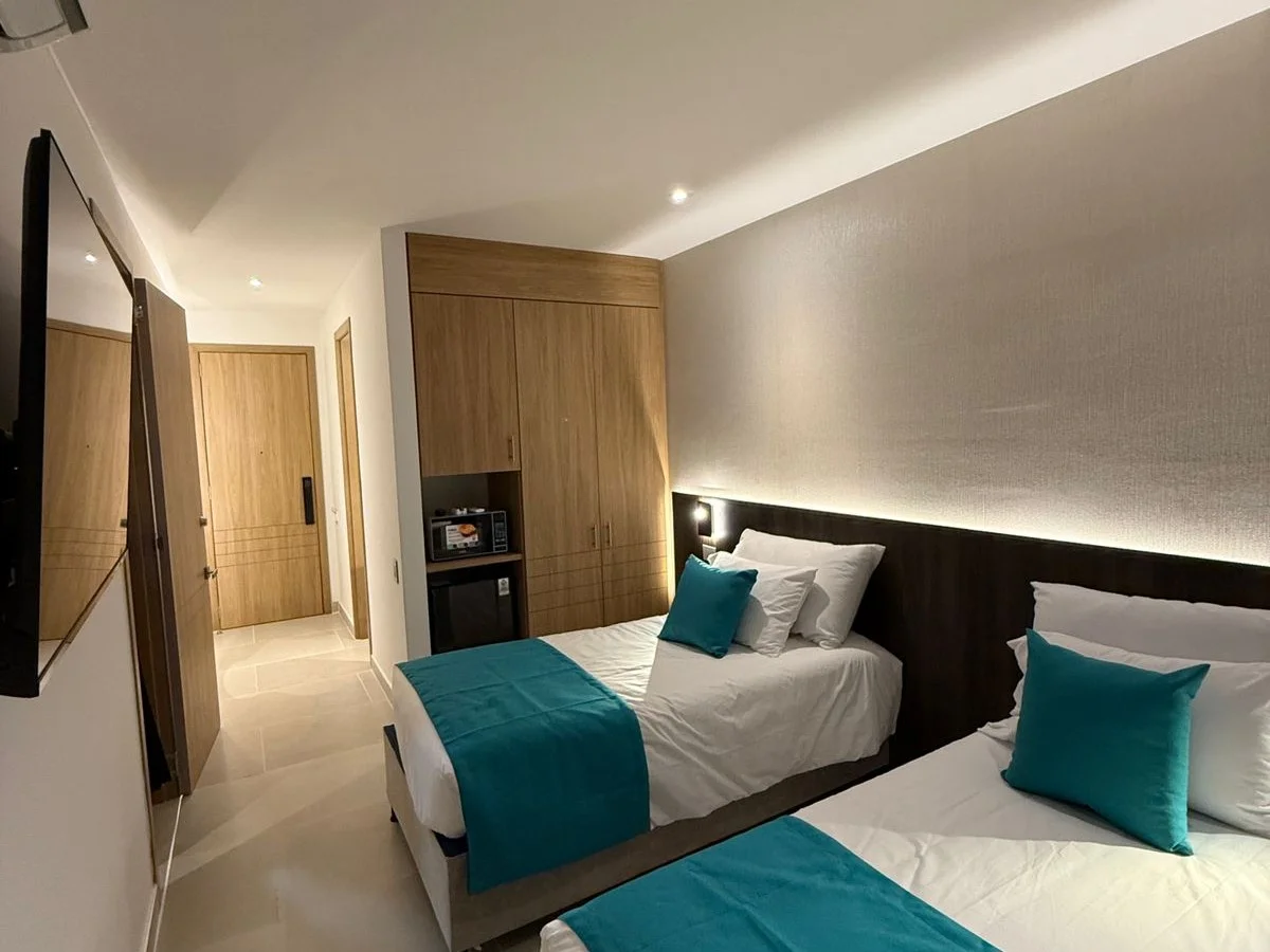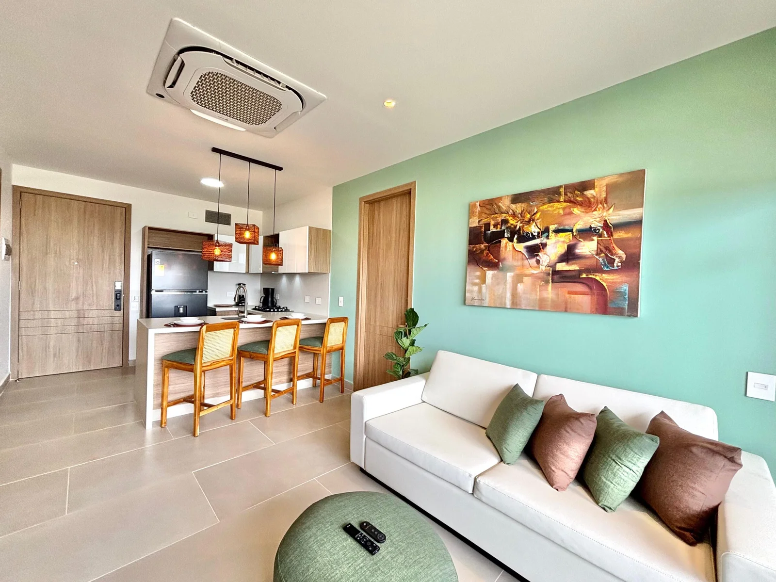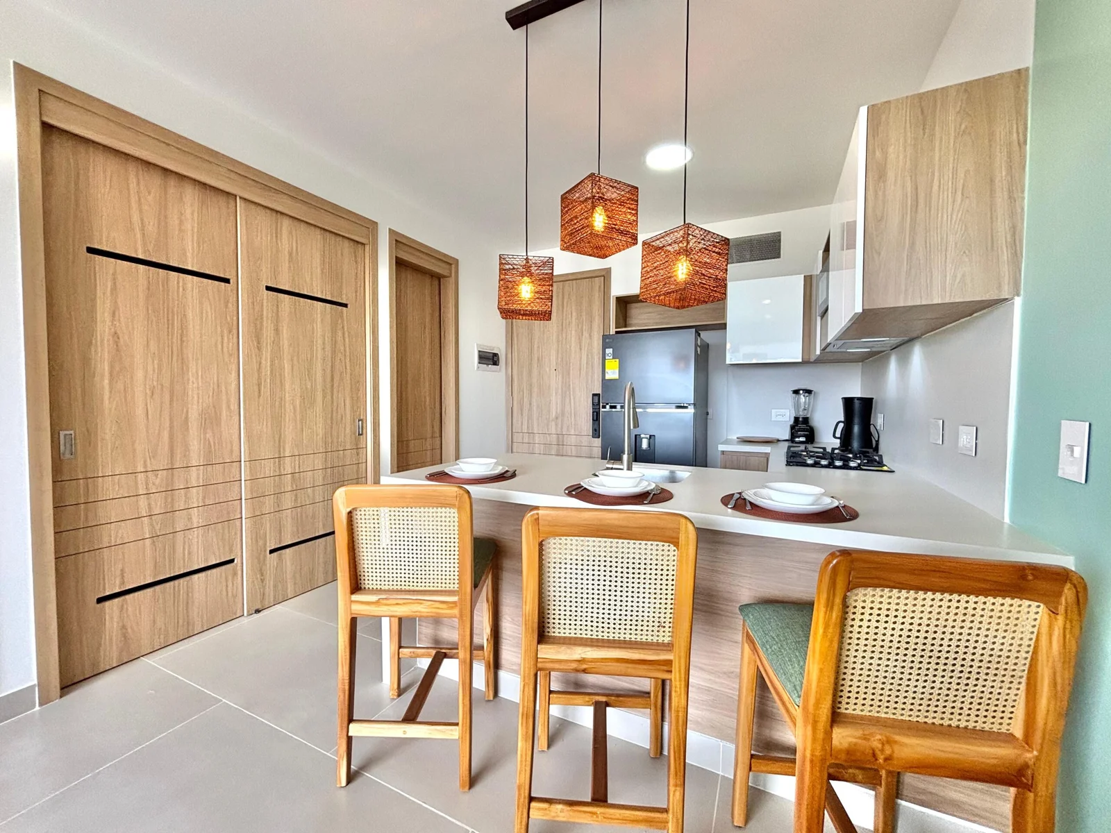 Apartamento a poco pasos de la playa y el centro histórico de 2 alcobas, 2 baños, balcón y 1 garaje. El edificio ofrece vigilancia 24 horas, zona social, piscina y zona de lavanderia.