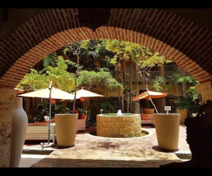 Casa colonial Portón del Baluarte de 4 niveles con 45 alcobas, mirador con piscina, zona social y ascensor. Actualmente funciona un hotel.