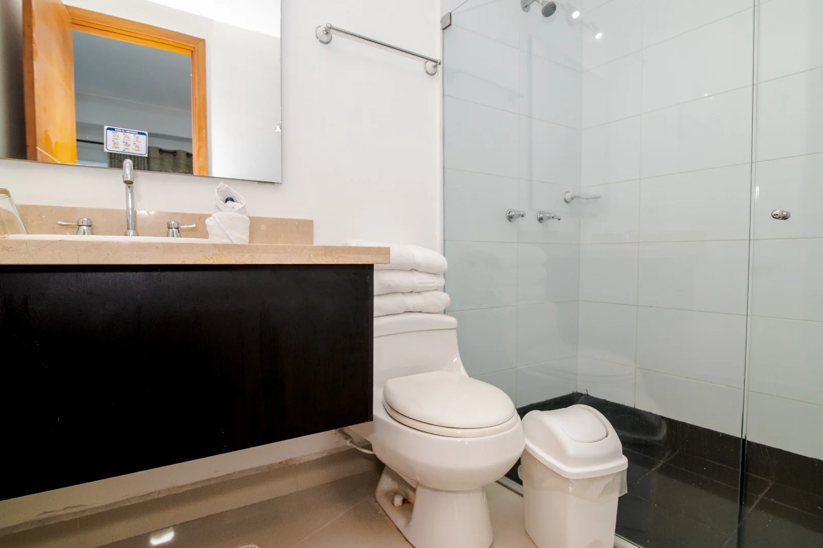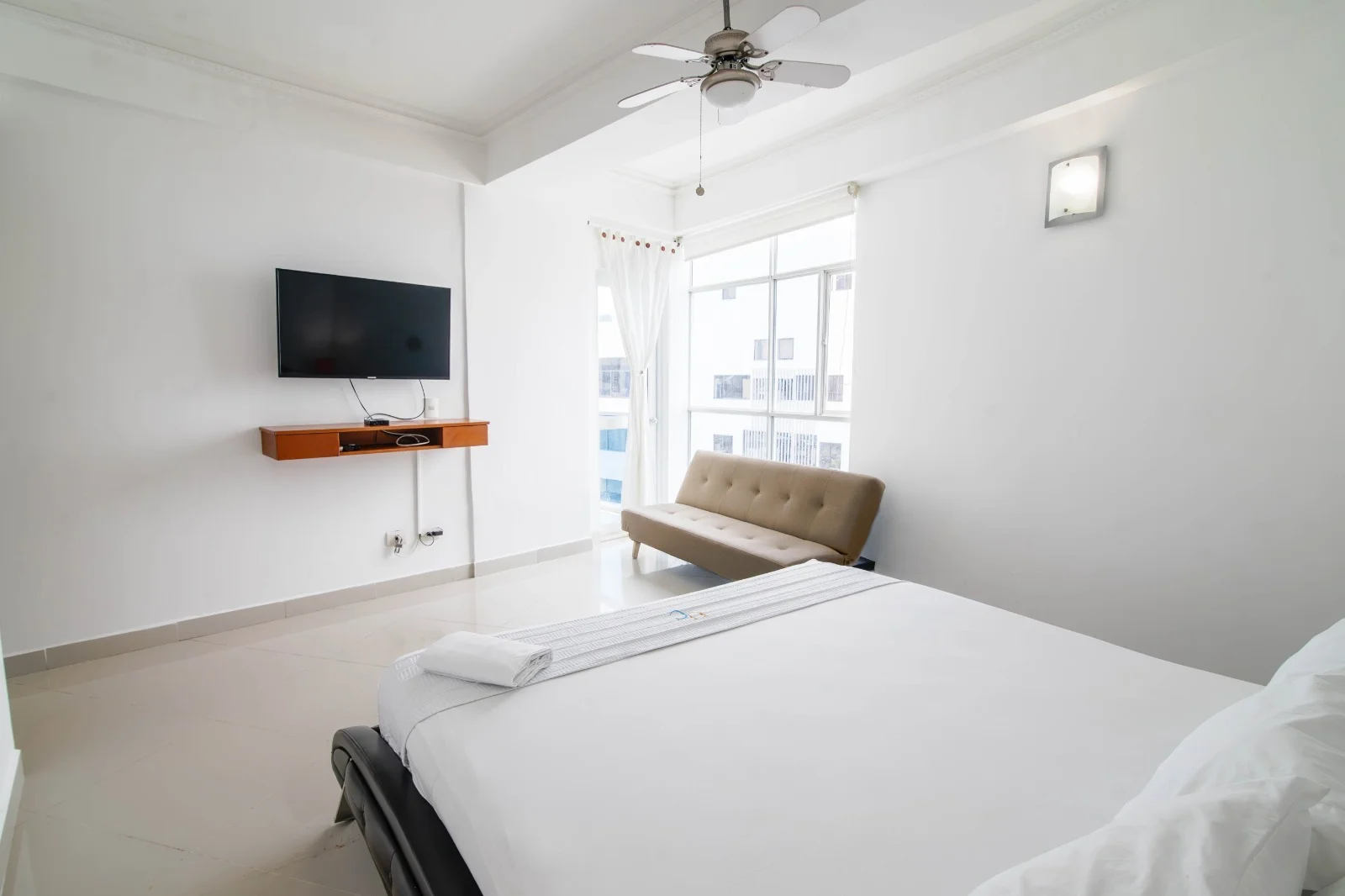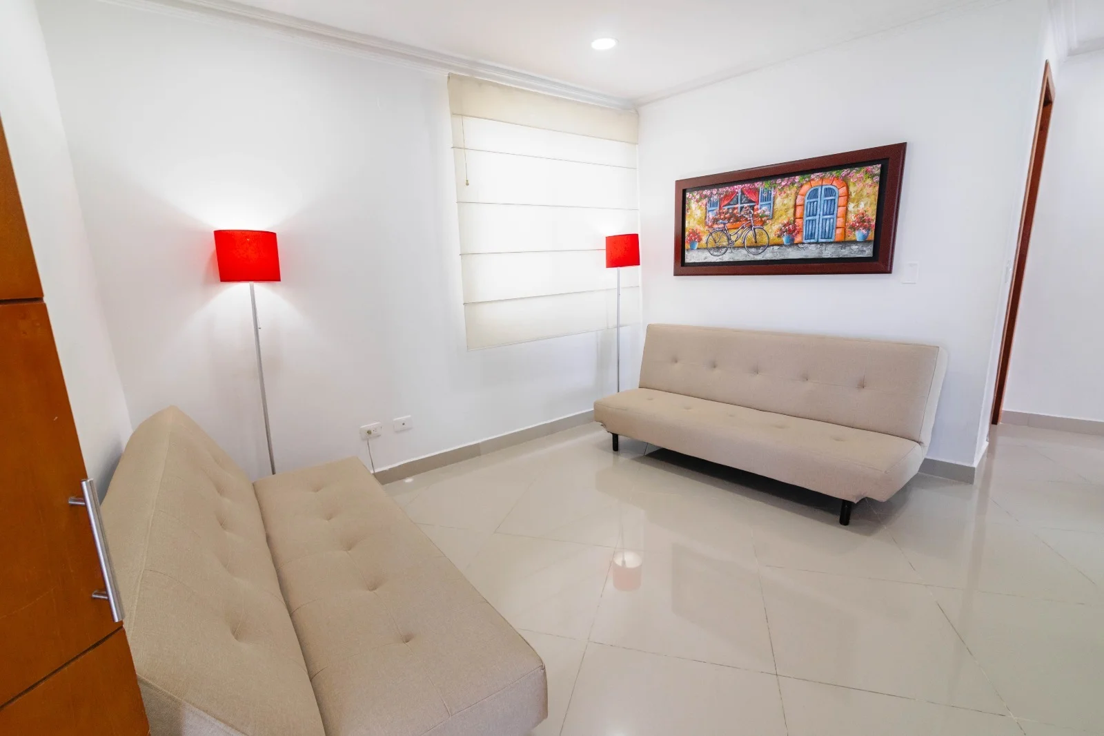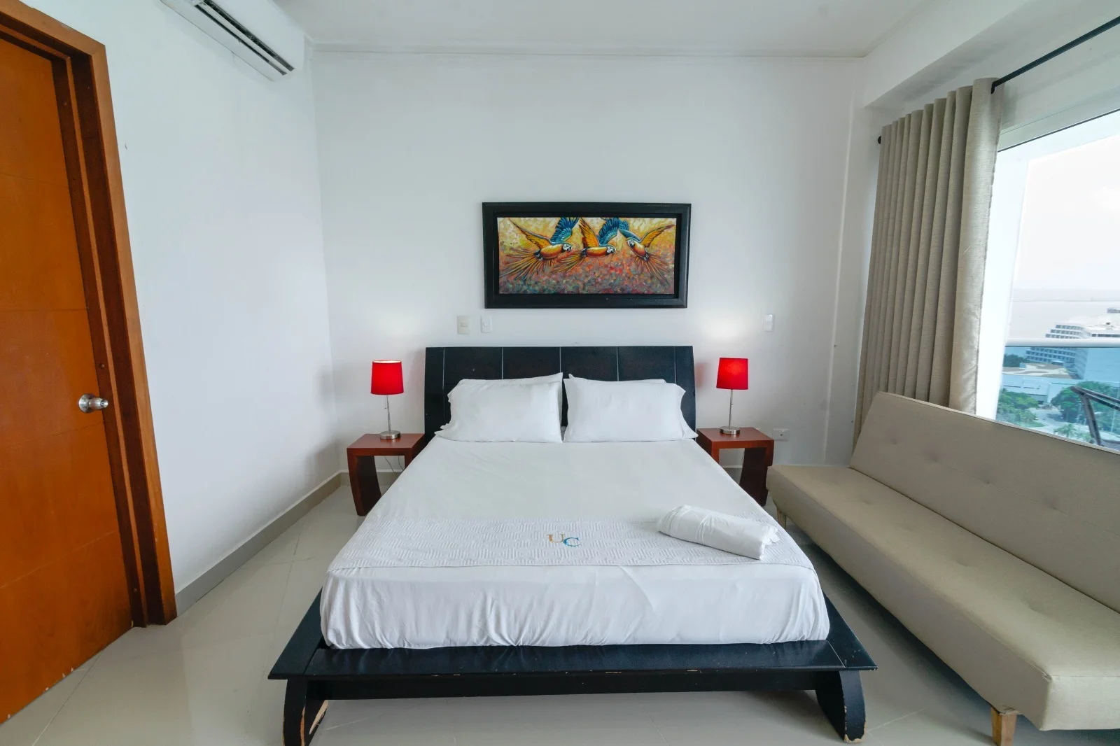 Apartamento con excelente vista al mar de 4 alcobas, 5 baños, balcón, cocina tipo americano, jacuzzi y garaje. El edificio ofrece salón social y piscina.