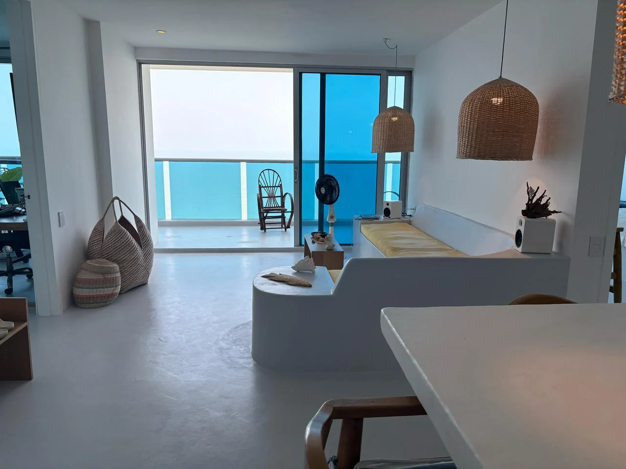Apartamento con excelente vista al mar, consta de 2 alcobas, 3 baños, cocina tipo americano, area de labores, garaje. El edificio ofrece piscina, salon social t turco.
